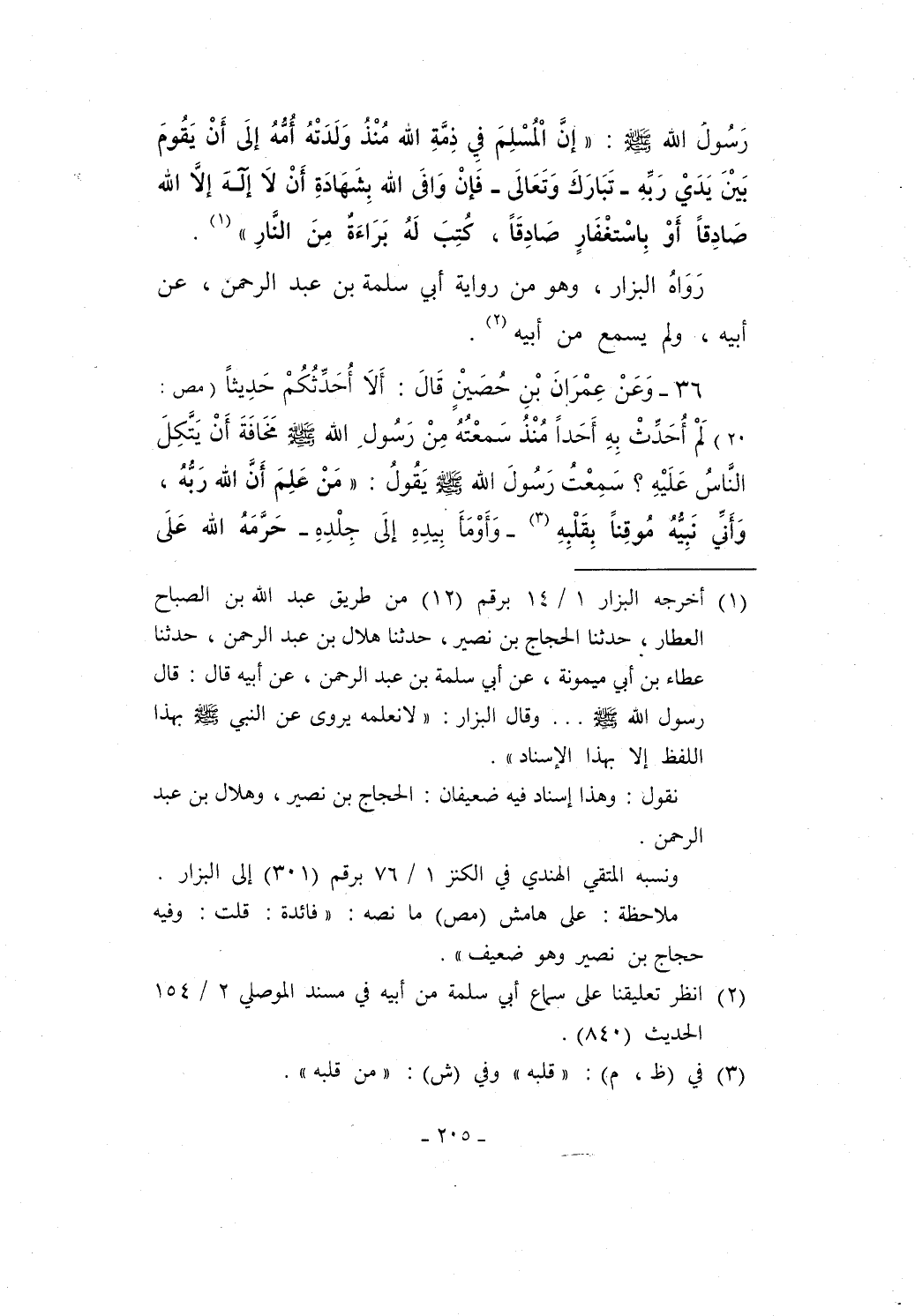 (¬1) أخرجه البزَّار 1/ 14 برقم (12) من طريق عبد الله بن الصباح العطار، حدثنا الحجاج بن نصير، حدثنا هلال بن عبد الرحمن، حدثنا عطاء بن أبي ميمونة، عن أبي سلمة بن عبد الرحمن، عن أبيه قال: قال رسول الله - صلى الله عليه وسلم - ... وقال البزار: "لا نعلمه يروى عن النبي - صلى الله عليه وسلم - بهذا اللفظ إلا بهذا الإسناد".