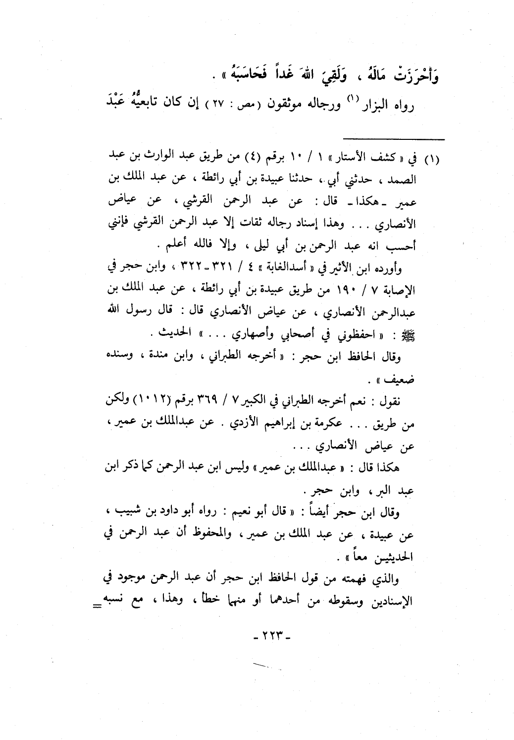 (¬1) في "كشف الأستار" 1/ 10 برقم (4) من طريق عبد الوارث بن عبد الصمد، حدثني أبي، حدثنا عبيدة بن أبي رائطة، عن عبد الملك بن عمير -هكذا- قال: عن عبد الرحمن القرشي، عن عياض الأنصاري ... وهذا إسناد رجاله ثقات إلا عبد الرحمن القرشي فإنني أحسب أنه عبد الرحمن بن أبي ليلى، وإلا فالله أعلم.