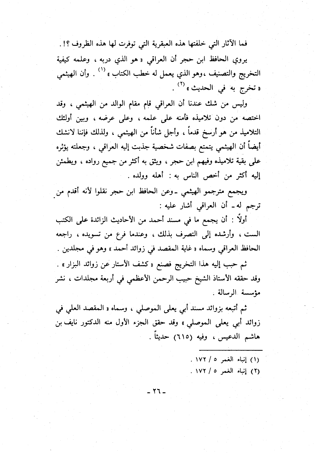 ويجمع مترجمو الهيثمي -وعن الحافظ ابن حجر نقلوا لأنه أقدم من ترجم له- أن العراقي أشار عليه: