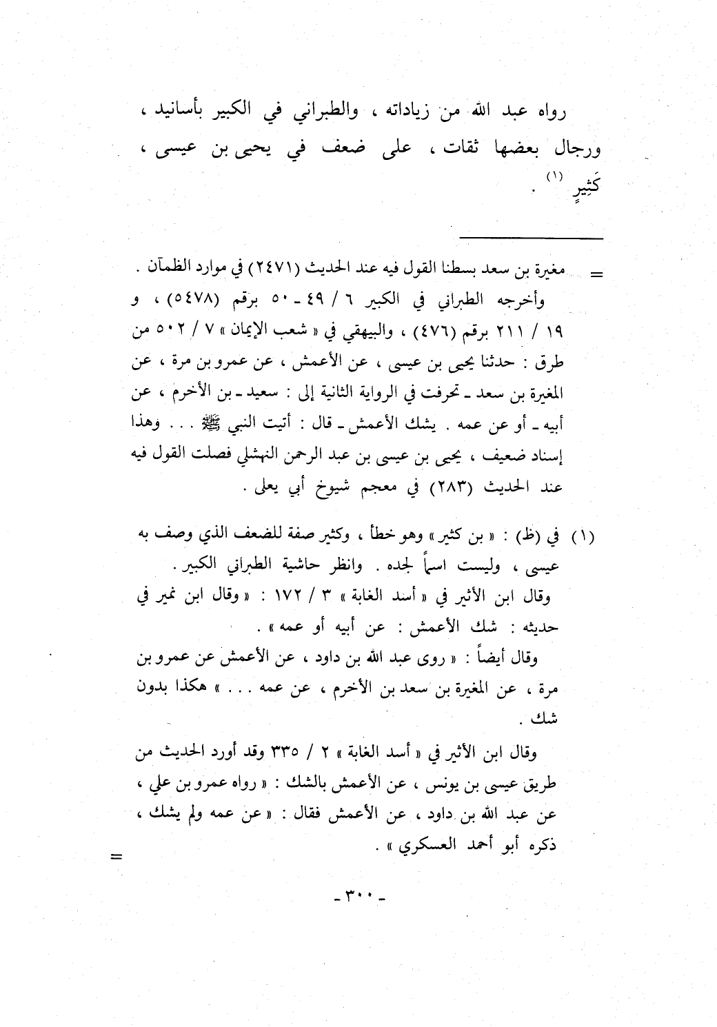 (¬1) في (ظ): "بن كثير" وهو خطأ، وكثير صفة للضعف الذي وصف به عيسى، وليست اسماً لجده. وانظر حاشية الطبراني الكبير.