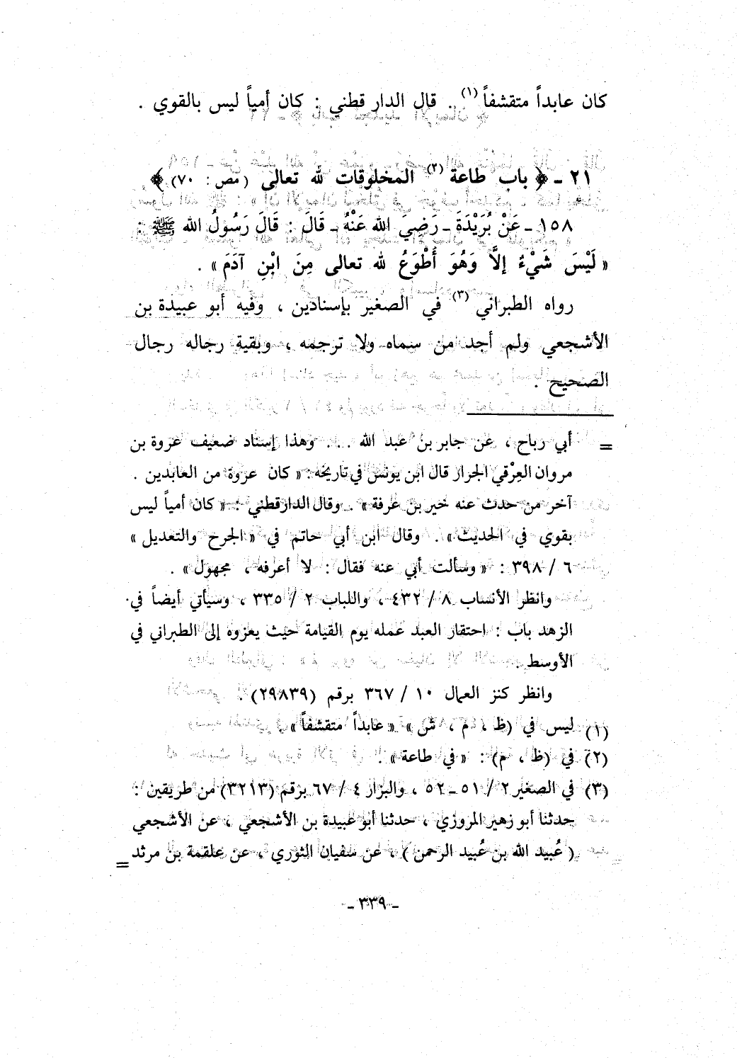 وانظر الأنساب 8/ 432، واللباب 2/ 335، وسيأتي أيضًا في الزهد باب: احتقار العبد عمله يوم القيامة حيث يعزوه إلى الطبراني في الأوسط.