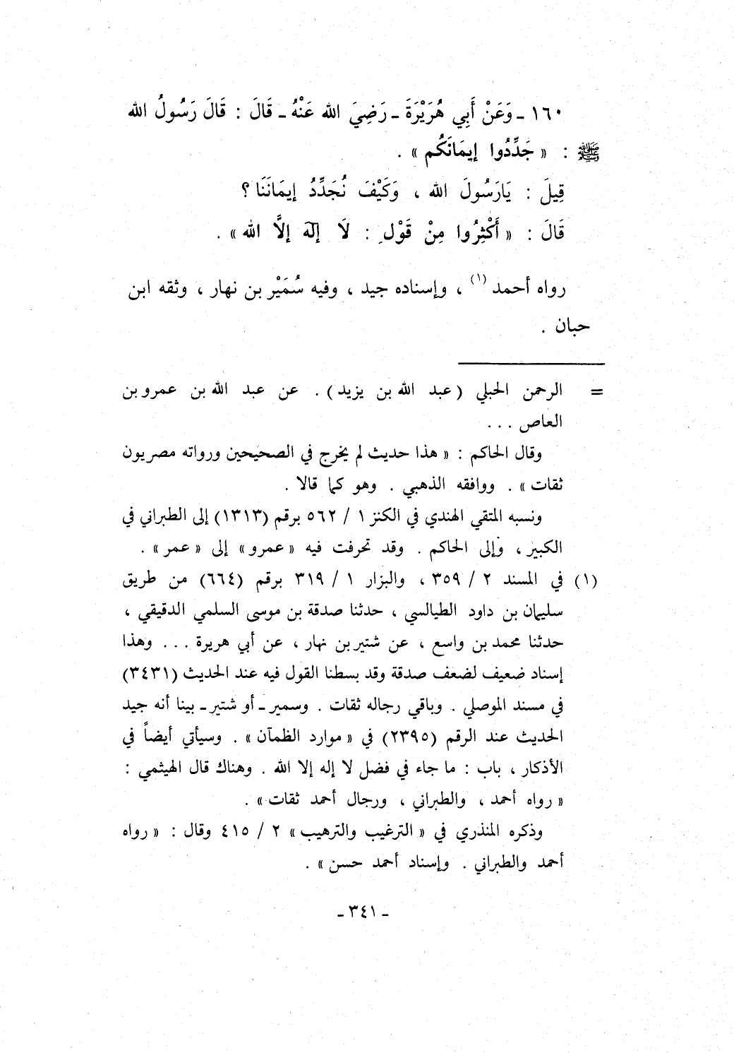 160 - وَعَنْ أَبِي هُرَيْرَةَ -رَضِيَ الله عَنْهُ- قَالَ: قَالَ رَسُولُ الله - صلى الله عليه وسلم -: "جَدِّدُوا إيمَانَكُم".
