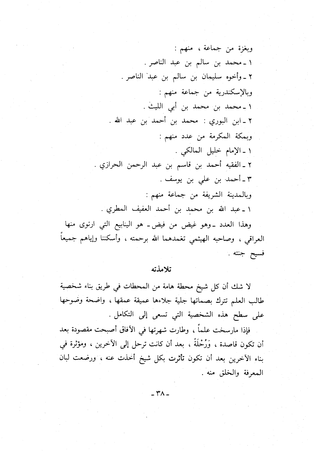 لا شك أن كل شيخ محطة هامة من المحطات في طريق بناء شخصية طالب العلم تترك بصماتها جلية جلاءها عميقة عمقها، واضحة وضوحها على سطح هذه الشخصية التي تسعى إلى التكامل.