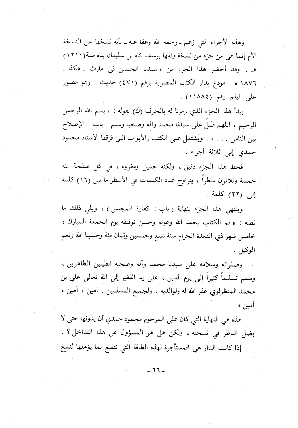 هذه هي النهاية التي كان على المرحوم محمود حمدي أن يدونها حتى لا يضل الناظر في نسخته، ولكن هل هو المسؤول عن هذا التداخل؟.