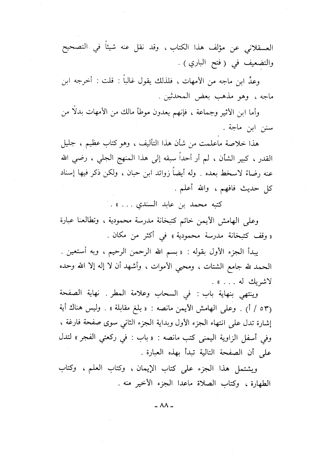 وأما ابن الأثير وجماعة، فإنهم يعدون موطأ مالك من الأمهات بدلاً من سنن ابن ماجة.