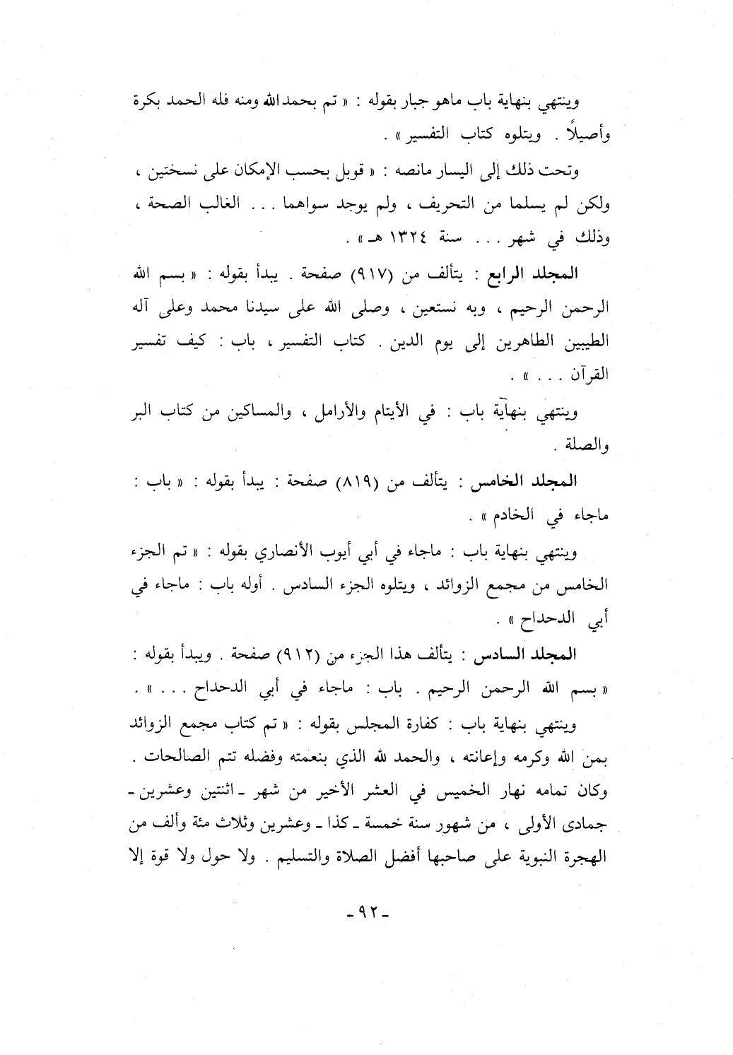 وكان تمامه نهار الخميس في العشر الأخير من شهر -اثنتين وعشرين- جمادى الأولى، من شهور سنة خمسة -كذا- وعشرين وثلاث مئة وألف من الهجرة النبوية على صاحبها أفضل الصلاة والتسليم. ولا حول ولا قوة إلا