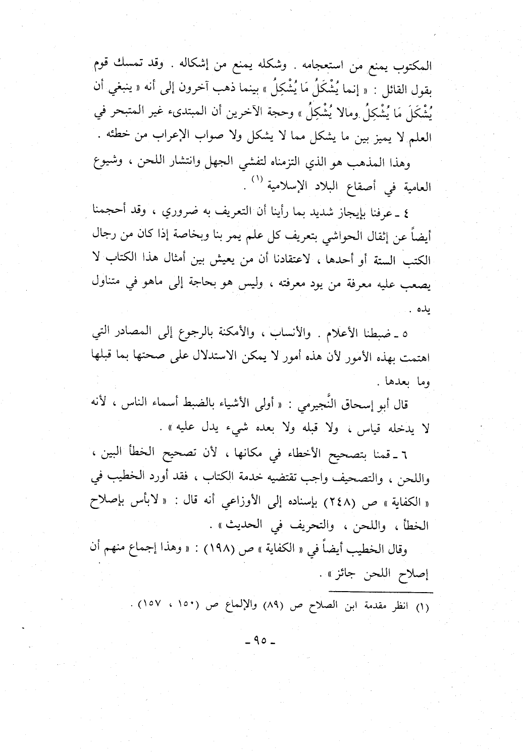 وقال الخطيب أيضاً في "الكفاية" ص (198): "وهذا إجماع منهم أن إصلاح اللحن جائز".