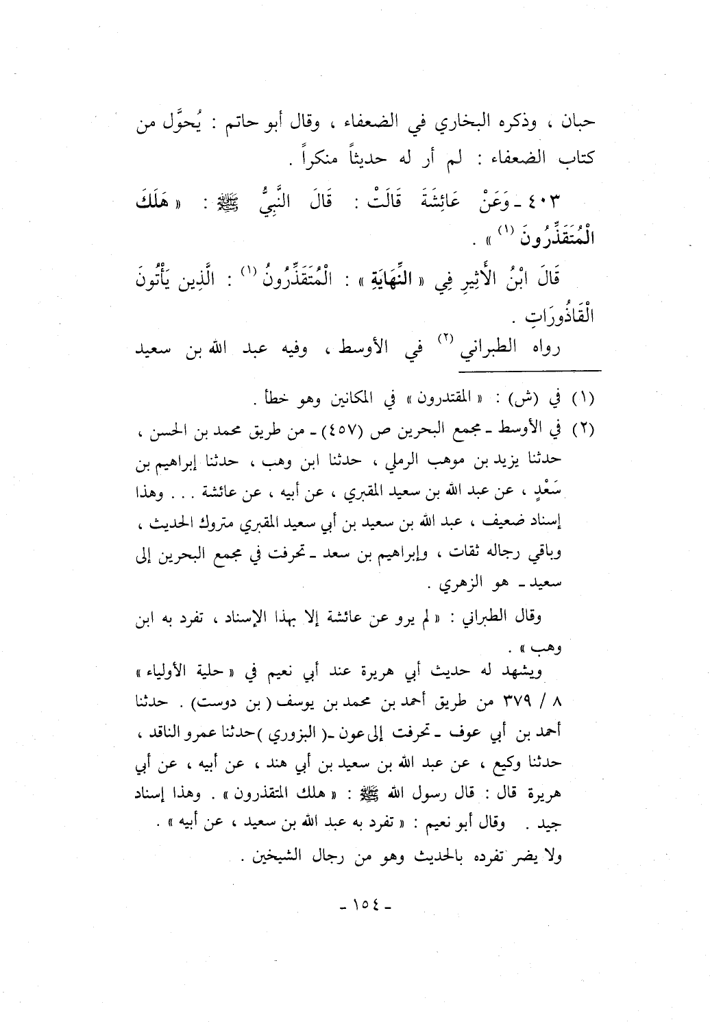 403 - وَعَنْ عَائِشَةَ قَالَتْ: قَالَ النَّبِيُّ - صلى الله عليه وسلم -: "هَلَكَ الْمُتَقَذِّرُونَ (1) ".