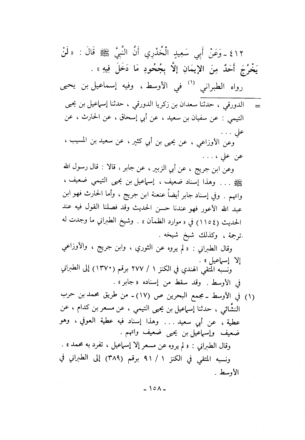 وقال الطبراني: "لم يروه عن الثوري، وابن جريج، والأوزاعي إلا إسماعيل".