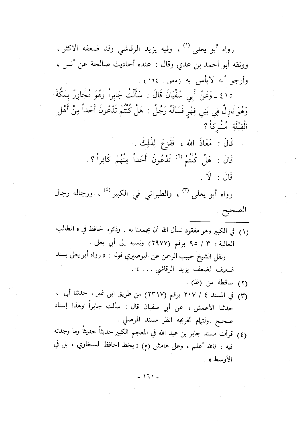 (¬1) في الكبير وهو مفقود نسأل الله أن يجمعنا به. وذكره الحافظ في "المطالب العالية" 3/ 95 برقم (2977) ونسبه إلى أبي يعلى.