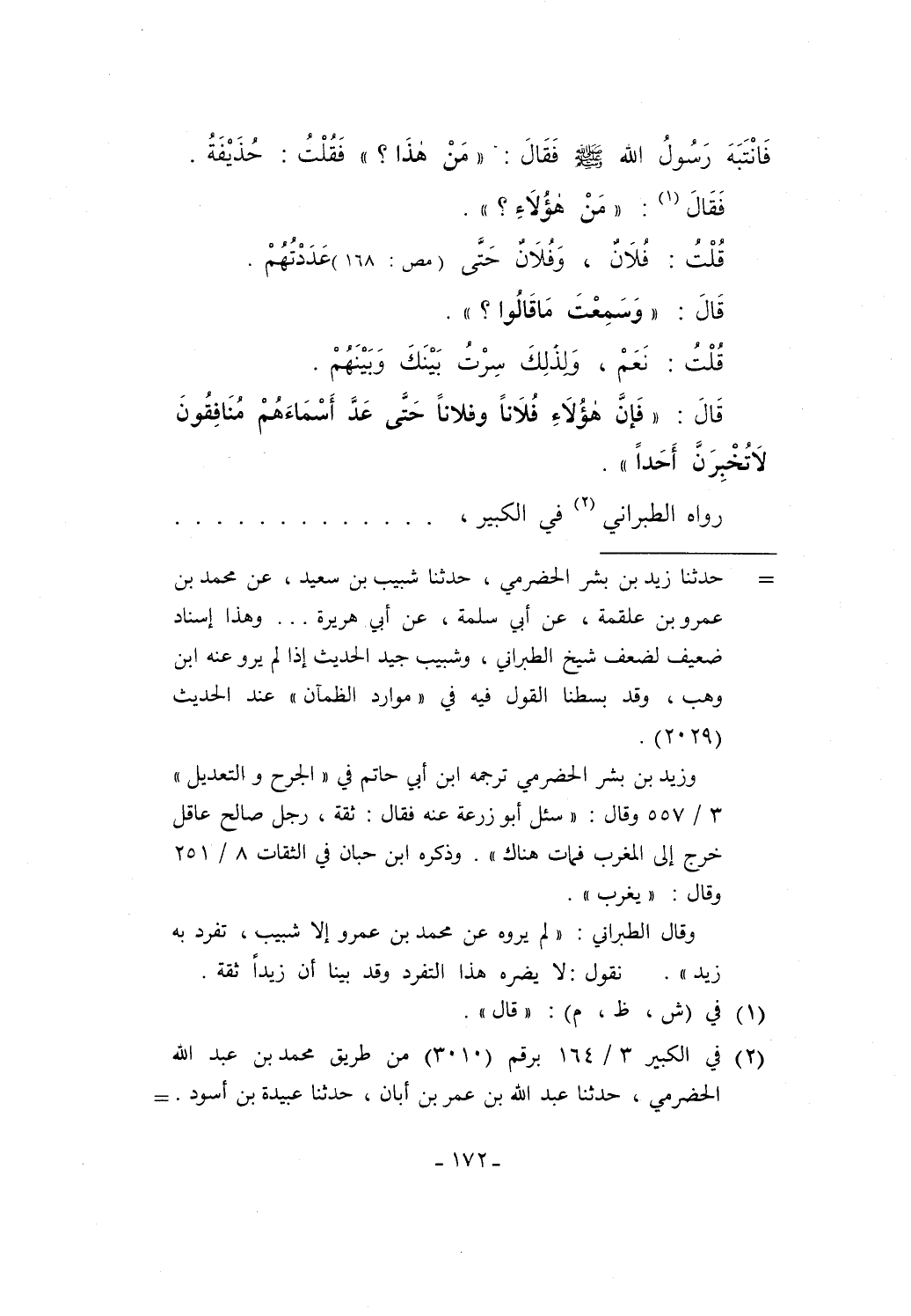 وقال الطبراني: "لم يروه عن محمد بن عمرو إلا شبيب، تفرد به زيد". نقول: لا يضره هذا التفرد وقد بينا أن زيدًا ثقة.