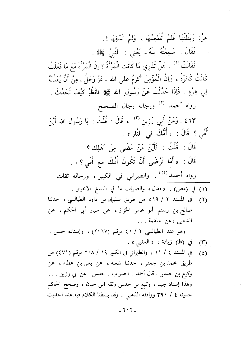 463 - وَعَنْ أَبِي رَزِينٍ (¬3)، قَالَ: قُلْتُ: يَا رَسُولَ الله أَيْنَ أُمِّي؟ قَالَ: "أُمُّكَ في النَّارِ".
