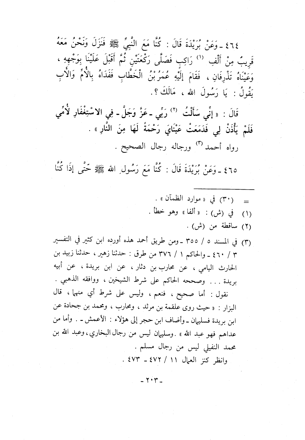 (¬3) في المسند 5/ 355 - ومن طريق أحمد هذه أورده ابن كثير في التفسير 3/ 460 - والحاكم 1/ 376 من طرق: حدثنا زهير، حدثنا زبيد بن الحارث اليامي، عن محارب بن دثار، عن ابن بريدة، عن أبيه بريدة ... وصححه الحاكم على شرط الشيخين، ووافقه الذهبي.