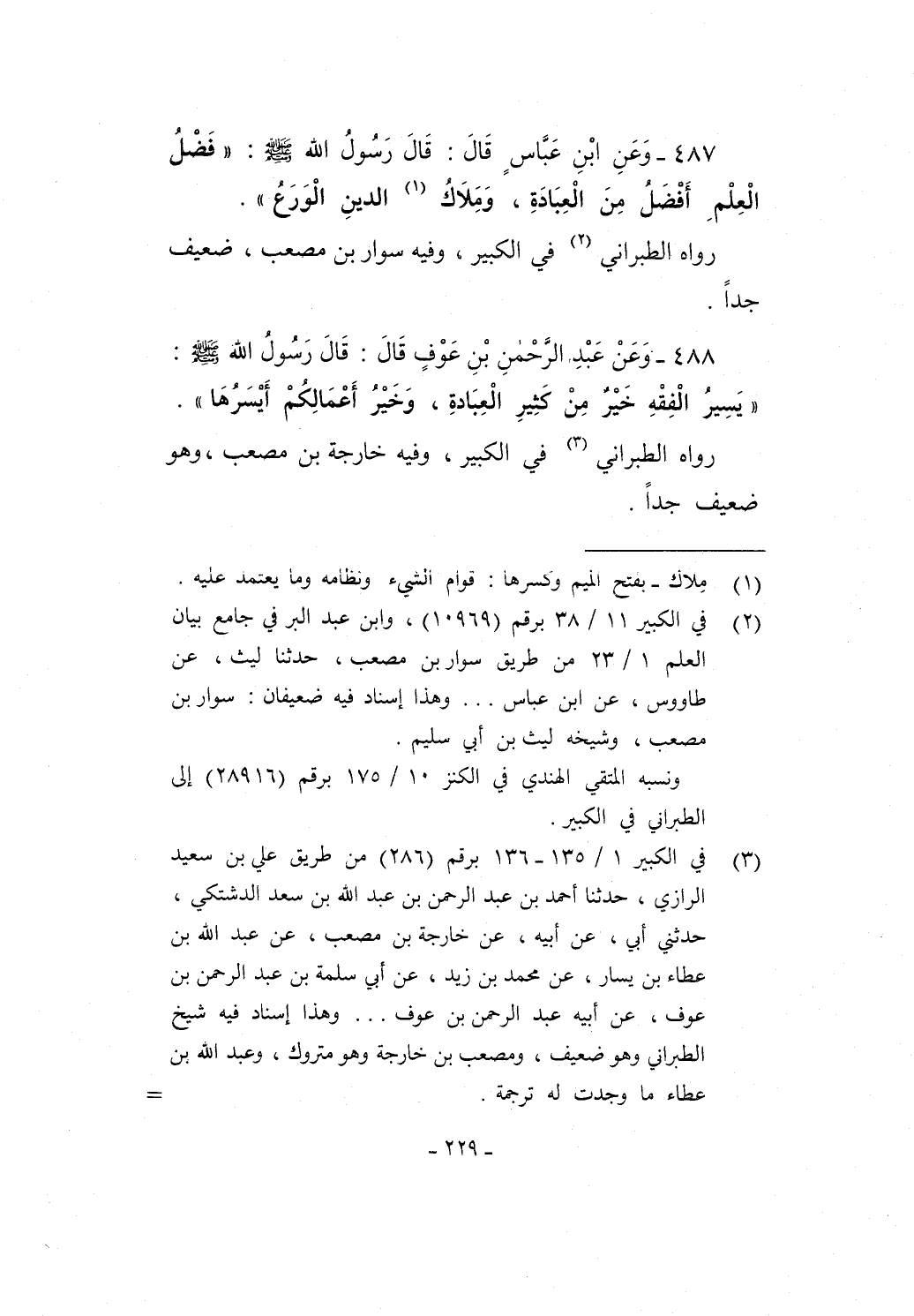 488 - وَعَنْ عَبْدِ الرَّحْمنِ بْنِ عَوْفٍ قَالَ: قَالَ رَسُولُ - صلى الله عليه وسلم -: "يَسِيرُ الْفِقْهِ خَيرٌ مِنْ كَثِيرِ الْعِبَادةِ، وَخَيْرُ أَعْمَالِكُمْ أَيْسَرُهَا".