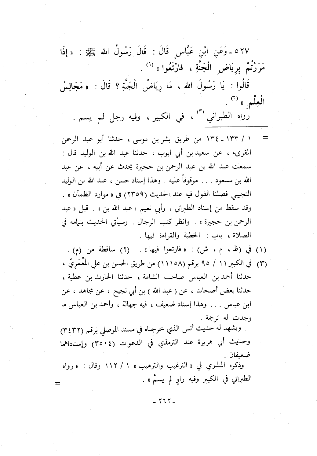527 - وَعَنِ ابْنِ عَبَّاسٍ قَالَ: قَالَ رَسُولُ الله - صلى الله عليه وسلم -: "إذَا مَرَرْتُمْ بِرِيَاضِ الْجَنَّةِ، فارْتَعُوا" (¬1).