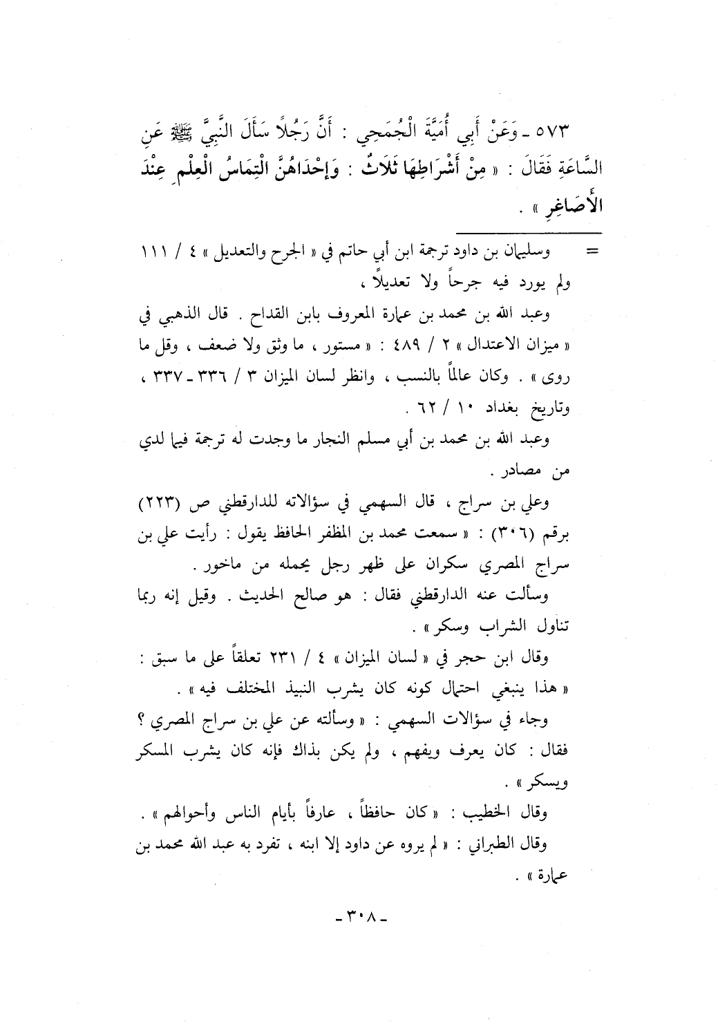 573 - وَعَنْ أَبِي أُمَيَّةَ الْجُمَحِي: أَنَّ رَجُلاً سَأَلَ النَّبِيَّ - صلى الله عليه وسلم - عَنِ السَّاعَةِ فَقَالَ: "مِنْ أَشْرَاطِهَا ثَلاَثٌ: وَإحْدَاهُنَّ الْتِمَاسُ الْعِلْمِ عِنْدَ الَأصَاغِرِ".