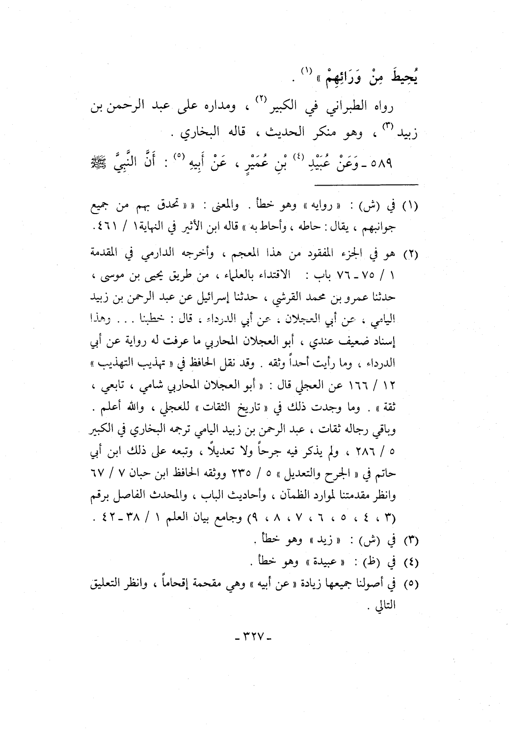 589 - وَعَنْ عُبَيْدِ (¬4) بْنِ عُمَيْرٍ، عَنْ أَبِيهِ (¬5): أَنَّ النَّبِيَّ - صلى الله عليه وسلم -
