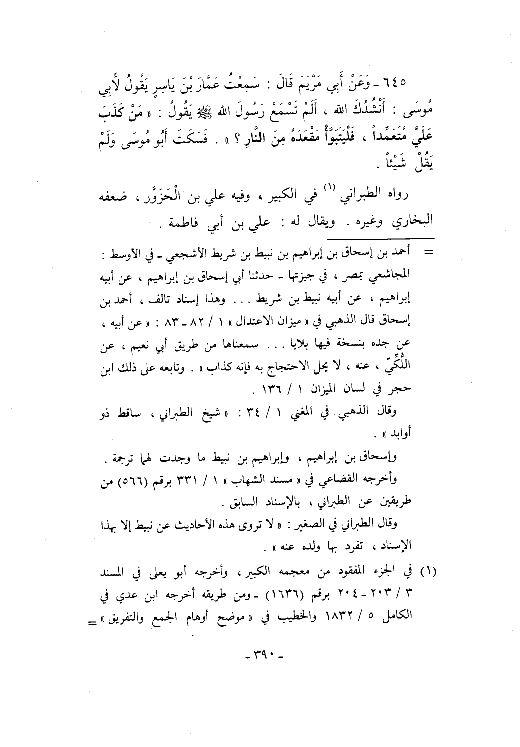 645 - وَعَنْ أَبِي مَرْيَمَ قَالَ: سَمِعْتُ عَمَّارَ بْنَ يَاسِرٍ يَقُولُ لأَبِي مُوسَى: أَنْشُدُكَ الله، أَلَمْ تَسْمَعْ رَسُولَ الله - صلى الله عليه وسلم - يَقولُ: "مَنْ كَذَبَ عَلَيَّ مُتَعَمِّداً، فَلْيَتَبَوَّأْ مَقْعَدَهُ مِنَ النَّارِ؟ ". فَسَكَتَ أَبُو مُوسَى وَلَمْ يَقُلْ شَيْئاً.