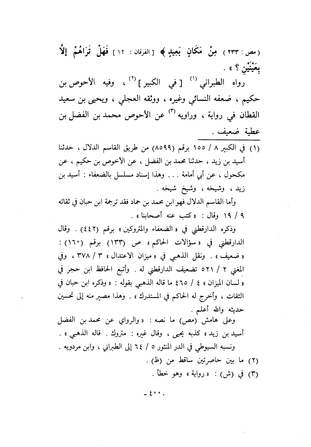 (مص: 233) مِنْ مَكانٍ بَعِيدٍ} [الفرقان: 12] فَهَلْ تَرَاهُمْ إلاَّ بِعَيْنَيْنِ؟ ".