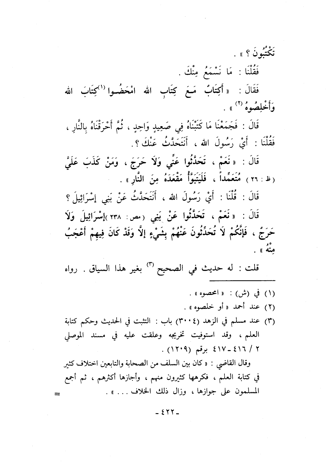 (¬3) عند مسلم في الزهد (3004) باب: التثبت في الحديث وحكم كتابة العلم، وقد استوفيت تخريجه وعلقت عليه في مسند الموصلي 2/ 416 - 417 برقم (1209).