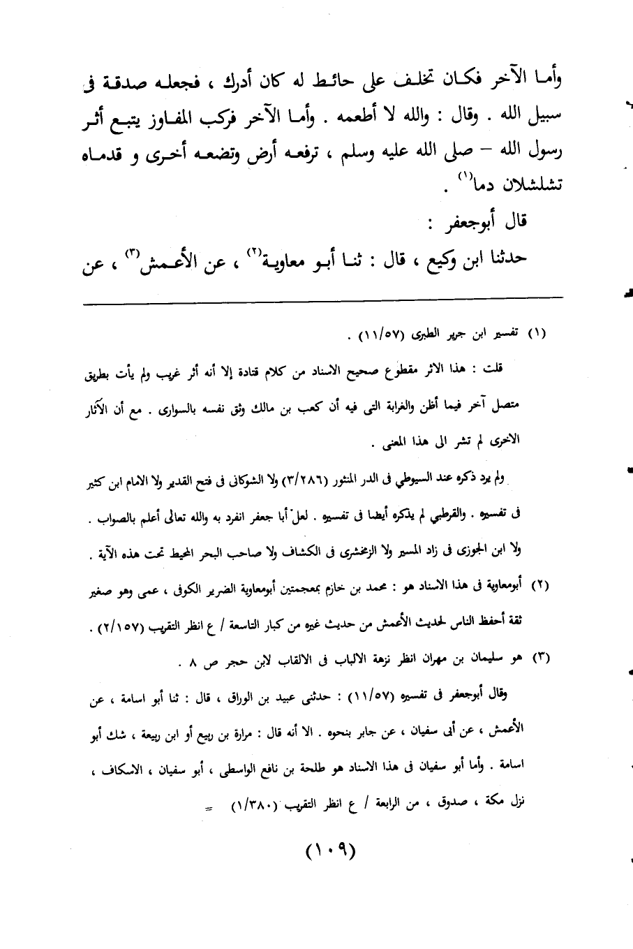 (¬2) أبو معاوية فى هذا الاسناد هو: محمد بن خازم بمعجمتين أبو معاوية الضرير الكوفى، عمى وهو صغير ثقة أحفظ الناس لحديث الأعمش من حديث غيره من كبار التاسعة/ ع انظر التقريب (157/ 2).