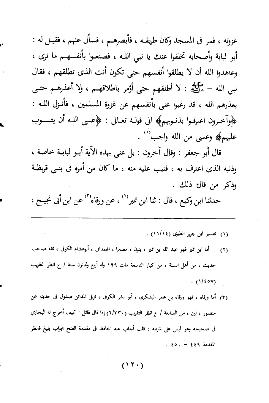 (¬2) أما ابن نمير فهو عبد اللَّه بن نمير، بنون، مصغرا، الهمدانى، أبو هشام الكوفى، ثقة صاحب حديث، من أهل السنة، من كبار التاسعة مات 199 وله أربع وثمانون سنة / ع انظر التقريب (457/ 1).