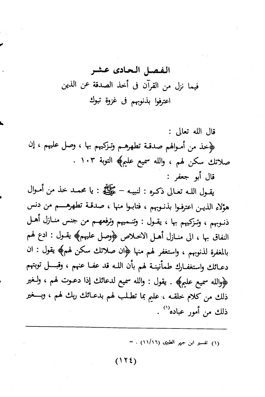 الفصل الحادى عشر فيما نزل من القرآن فى أخذ الصدقة عن الذين اعترفوا بذنوبهم فى غزوة تبوك