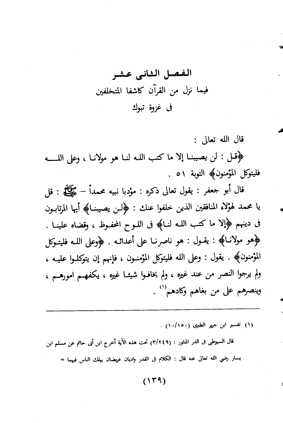الفصل الثانى عشر فيما نزل من القرآن كاشفا المتخلفين فى غزوة تبوك