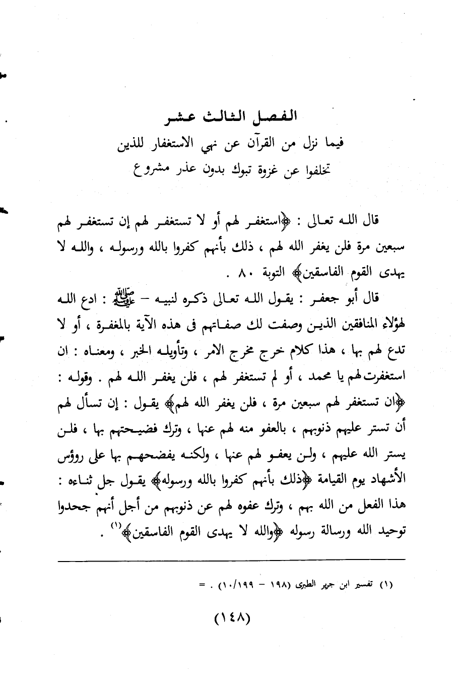 الفصل الثالث عشر فيما نزل من القرآن عن نهي الاستغفار للذين تخلفوا عن غزة تبوك بدون عذر مشروع