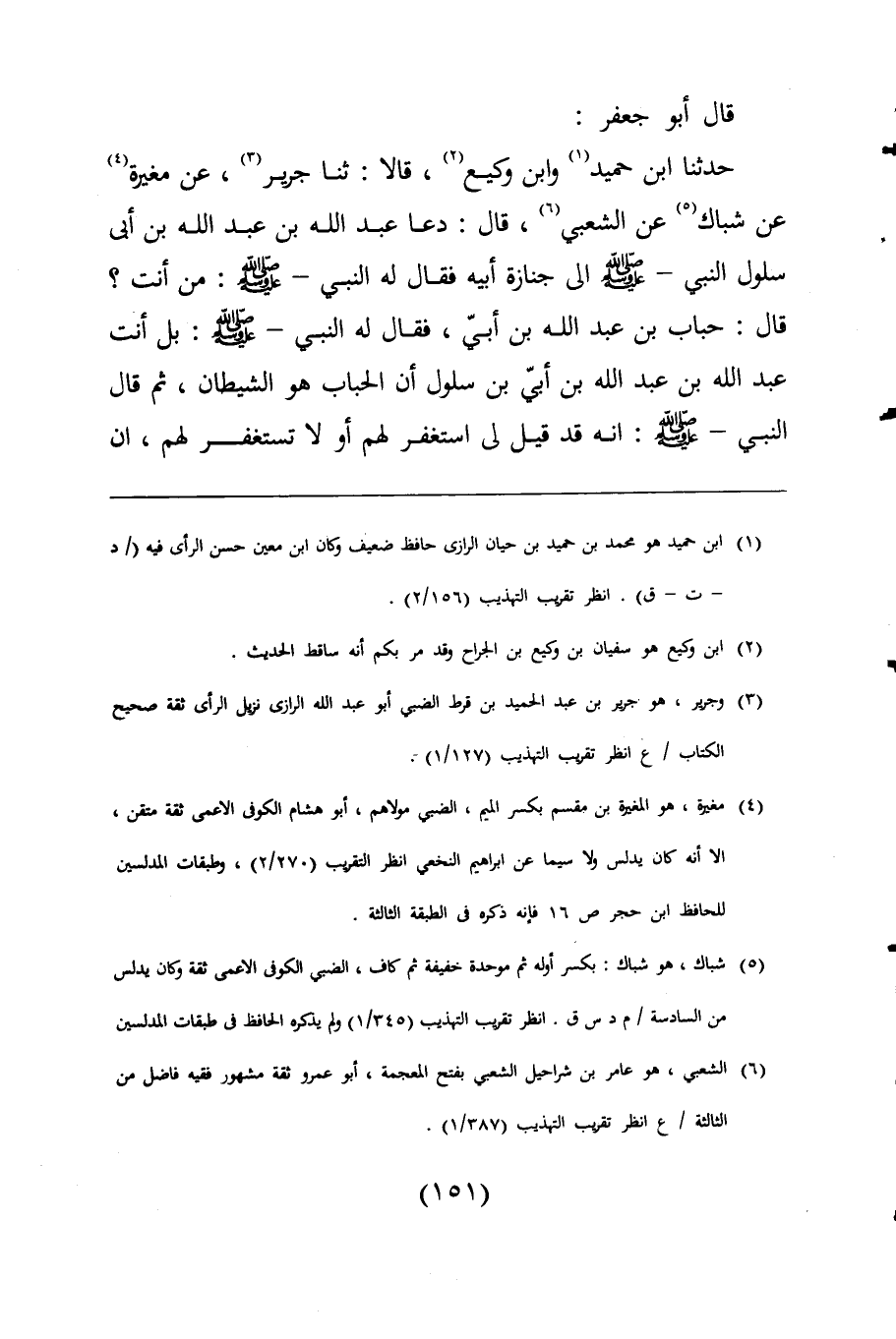(¬1) ابن حميد هو محمد بن حميد بن حيان الرازى حافظ ضعيف وكان ابن معين حسن الرأى فيه (/ د - ت - ق). انظر تقريب التهذيب (156/ 2).