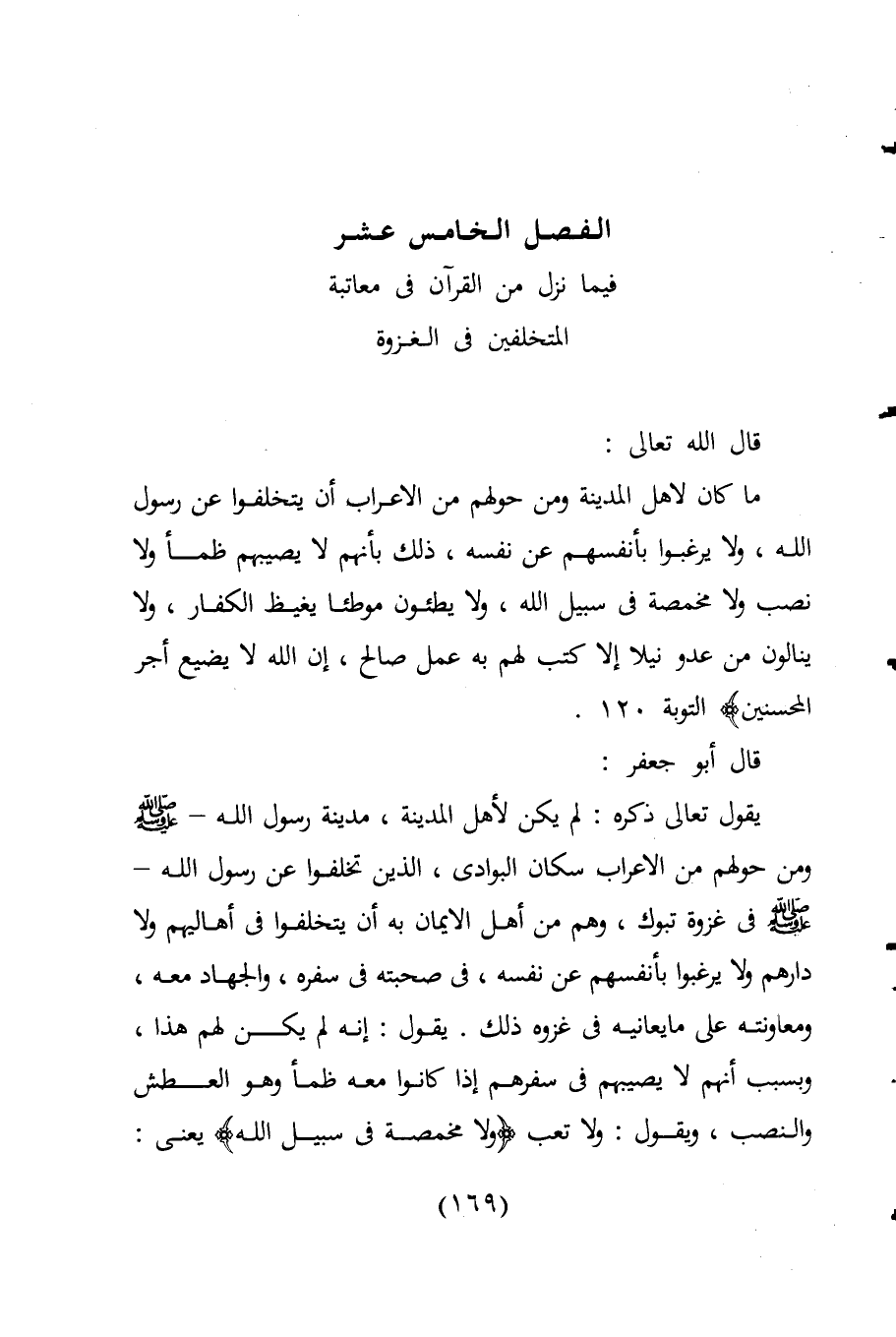 الفصل الخامس عشر فيما نزل من القرآن فى معاتبة المتخلفين فى الغزوة