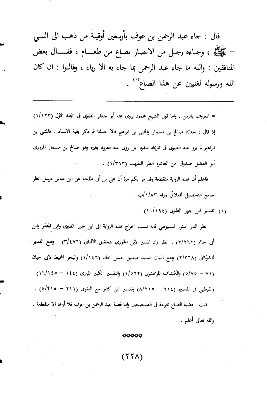 قلت: قضية الصاع مخرجة فى الصحيحين واما قصة عبد الرحمن بن عوف فلا أراها الا منقطعة. واللَّه تعالى أعلم.