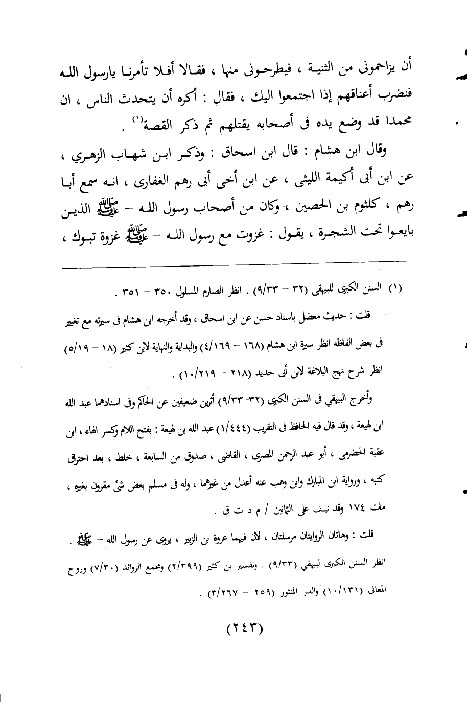 (¬1) السنن الكبرى للبيهقى (32 - 33/ 9). انظر الصارم المسلول 350 - 351.