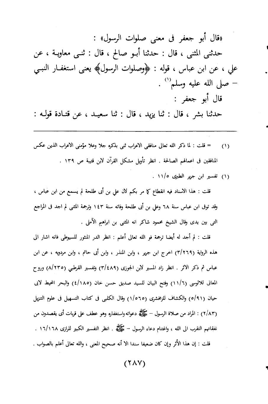 "قال أبو جعفر فى معنى صلوات الرسول":