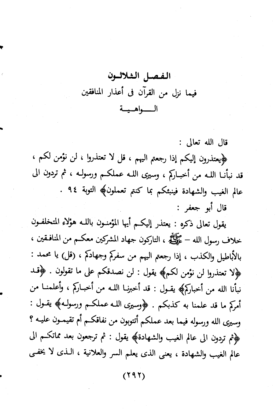الفصل الثلاثون فيما نزل من القرآن فى أعذار المنافقين الواهية