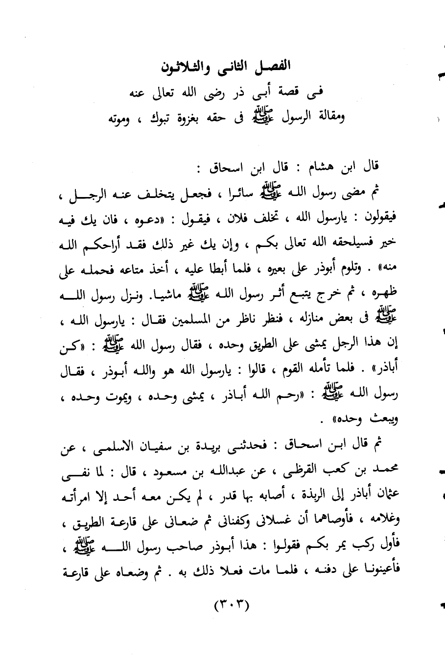 الفصل الثانى والثلاثون فى قصة أبى ذر رضي اللَّه تعالى عنه ومقالة الرسول -صلى اللَّه عليه وسلم- فى حقه بغزوة تبوك، وموته