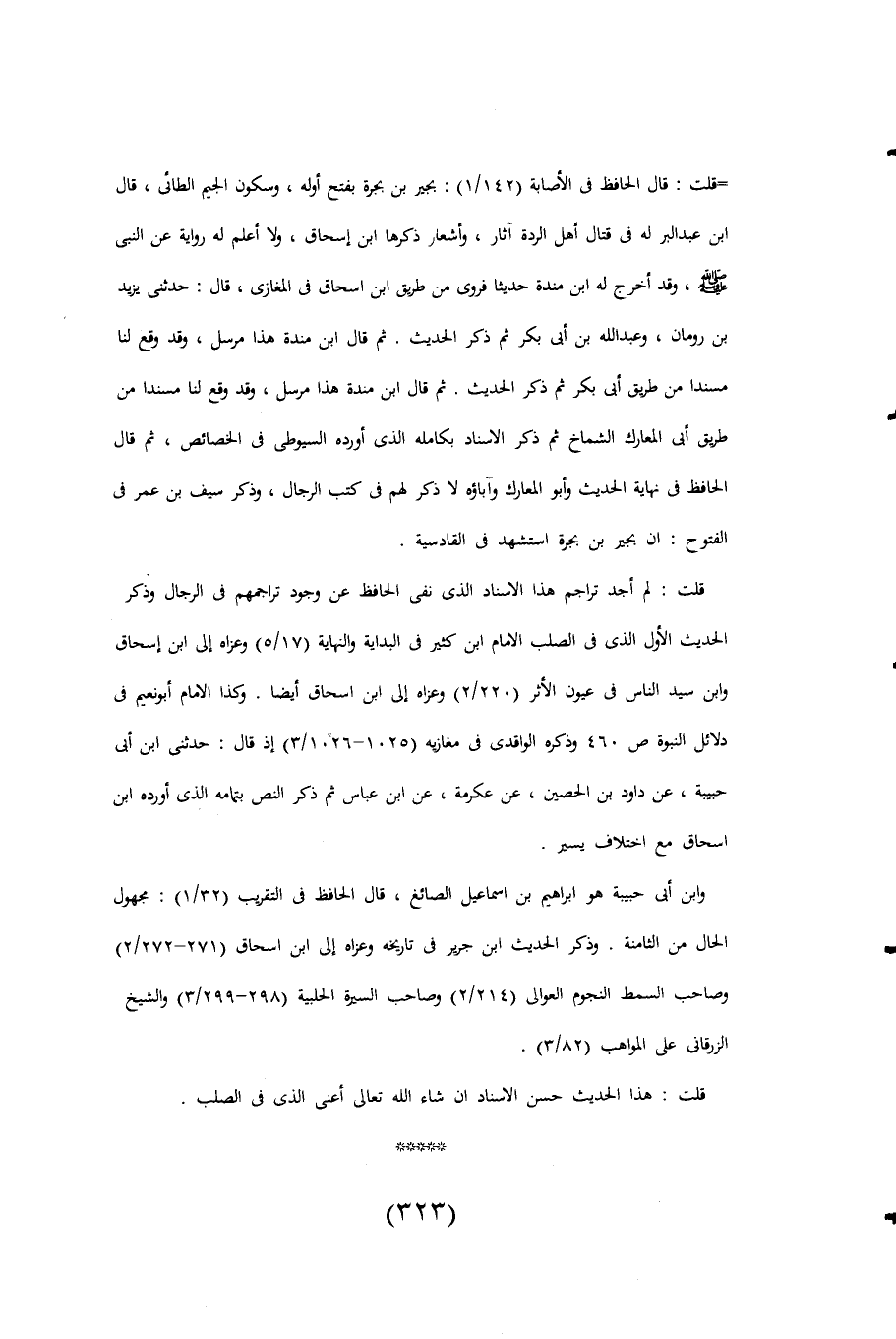 قلت: لم أجد تراجم هذا الاسناد الذى نفى الحافظ عن وجود تراجمهم فى الرجال وذكر الحديث الأول الذى فى الصلب الإمام ابن كثير فى البداية والنهاية (17/ 5) وعزاه الى ابن إسحاق وابن سيد الناس فى عون الأثر (220/ 2) وعزاه الى ابن إسحاق أيضا. وكذا الإمام أبو نعيم فى دلائل النبوة ص 460 وذكره الراقدى فى مغازيه (1025 - 1026/ 3) إذ قال: حدثنى ابن أبى حبيبة، عن داود بن الحصين، عن عكرمة، عن ابن عباس ثم ذكر النص بتمامه الذى أورده ابن إسحاق مع اختلاف يسير.