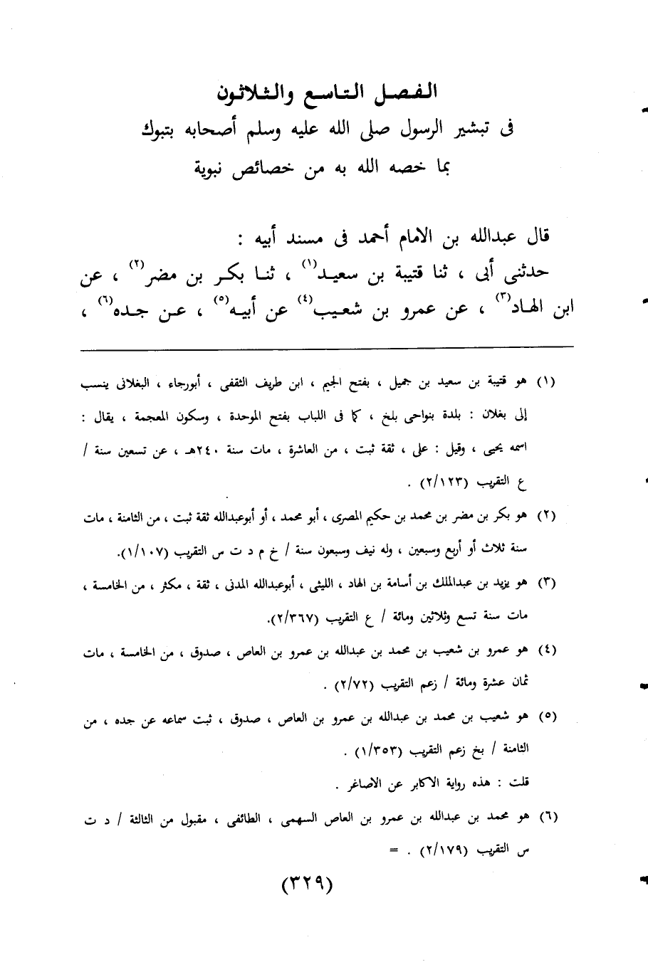 (¬4) هو عمرو بن شعيب بن محمد بن عبد اللَّه بن عمرو بن العاص، صدوق، من الخامسة، مات ثمان عشرة ومائة / زعم التقريب (72/ 2).