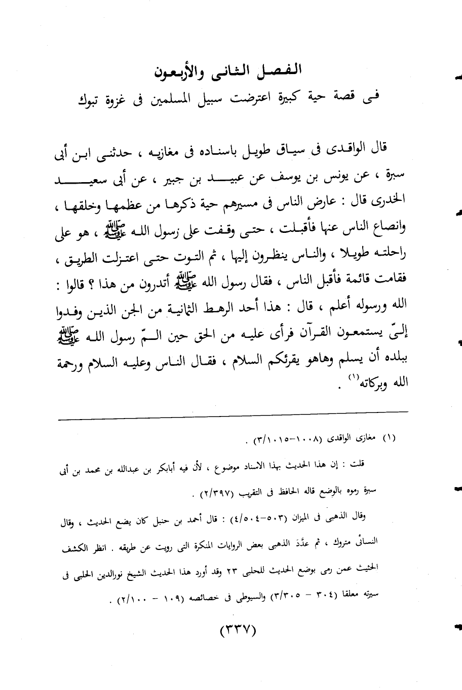 الفصل الثانى والأربعون فى قصة حية كبيرة اعترضت سبيل المسلمين فى غزوة تبوك