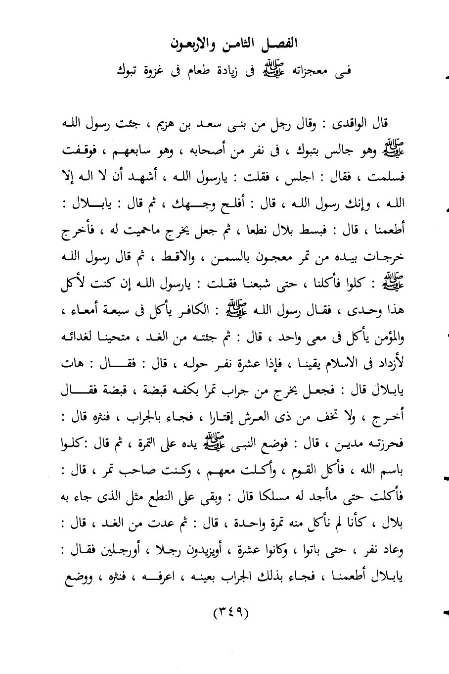 الفصل الثامن والاربعون فى معجزاته -صلى اللَّه عليه وسلم- فى زيادة طعام فى غزوة تبوك