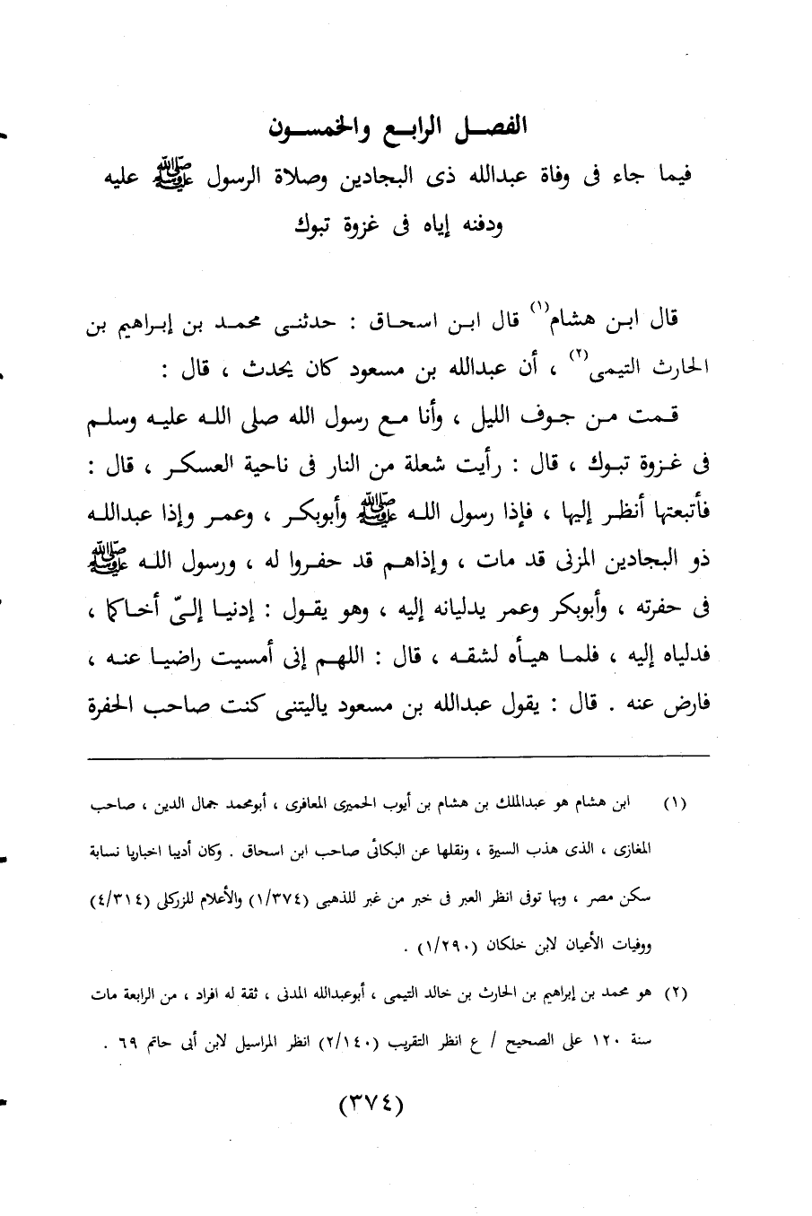 الفصل الرابع والخمسون فيما جاء فى وفاة عبد اللَّه ذى البجادين وصلاة الرسول -صلى اللَّه عليه وسلم- عليه ودفنه إياه فى غزوة تبوك
