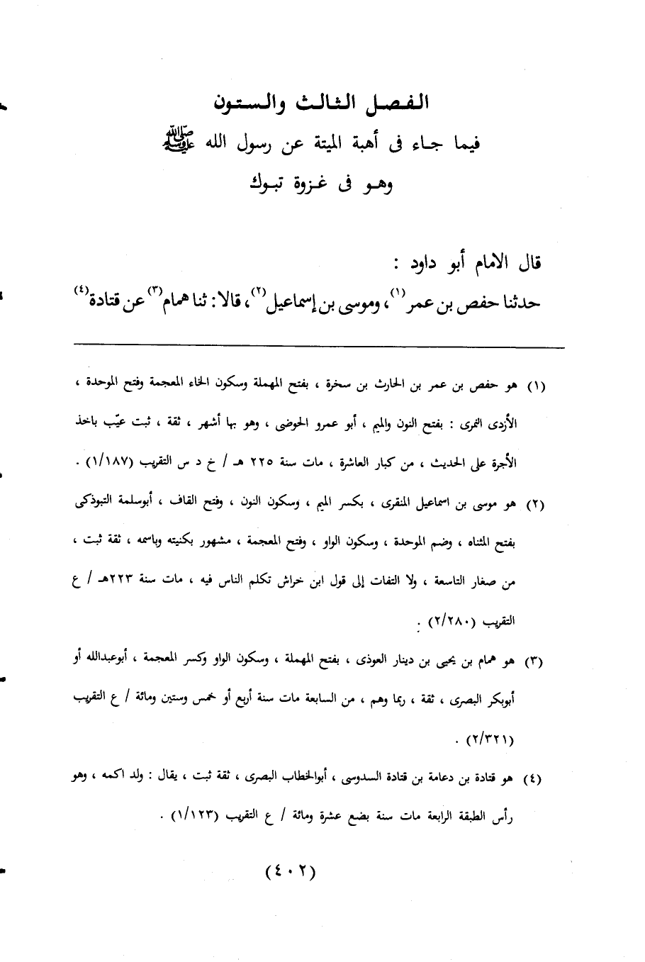 الفصل الثالث والستون فيما جاء فى أهبة الميتة عن رسول اللَّه -صلى اللَّه عليه وسلم- وهو فى غزوة تبوك