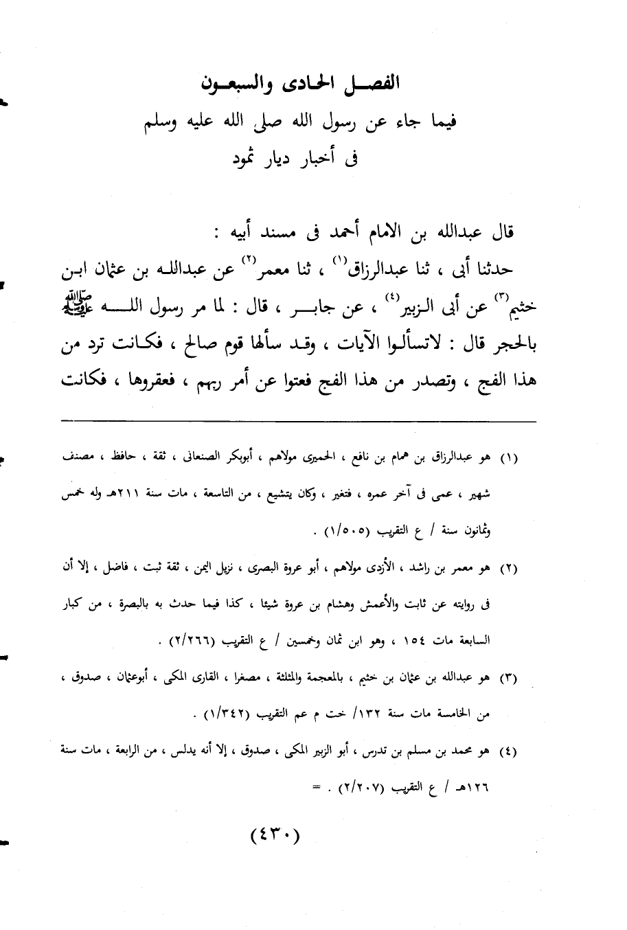 الفصل الحادى والسبعون فيما جاء عن رسول اللَّه صلى اللَّه عليه وسلم فى أخبار ديار ثمود