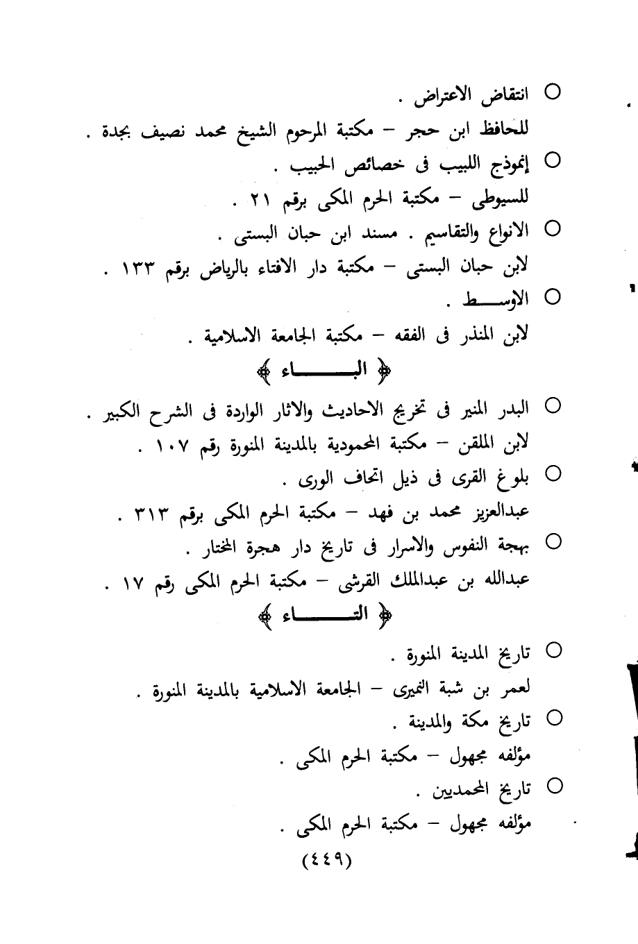 ° بلوغ القرى فى ذيل اتحاف الورى. عبد العزيز محمد بن فهد - مكتبة الحرم المكى برقم 313.