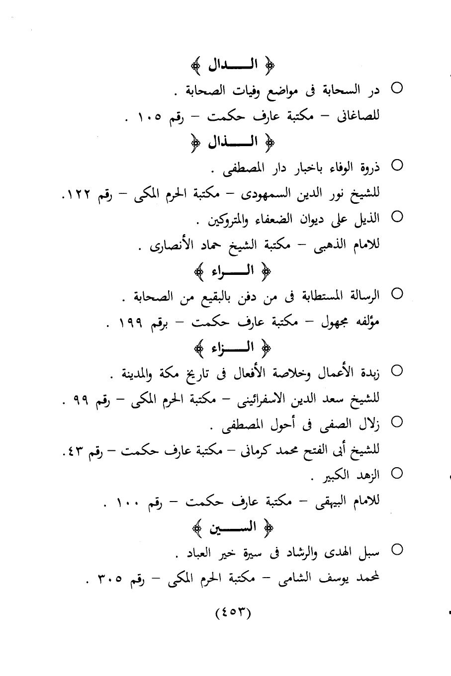 ° سبل الهدى والرشاد فى سيرة خير العباد. لمحمد يوسف الشامى - مكتبة الحرم المكى - رقم 305.