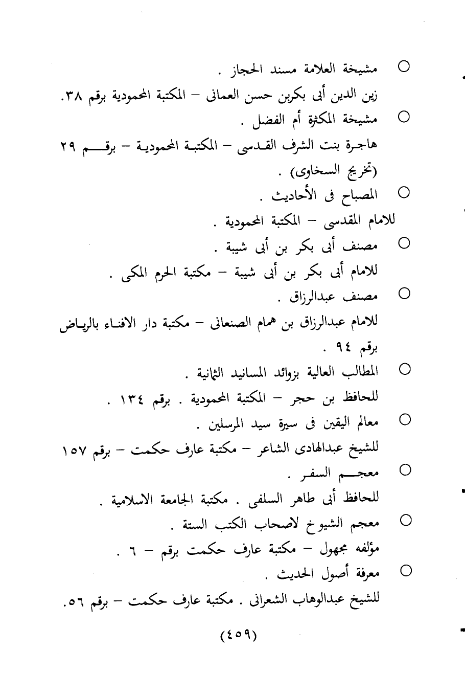 ° مشيخة العلامة مسند الحجاز. زين الدين أبى بكر بن حسن العمانى - المكتبة المحمودية برقم 38.