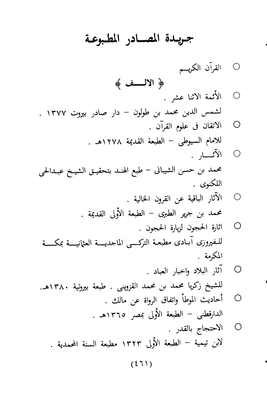 ° الاحتجاج بالقدر. لابن تيمية - الطبعة الأولى 1323 مطبعة السنة المحمدية.
