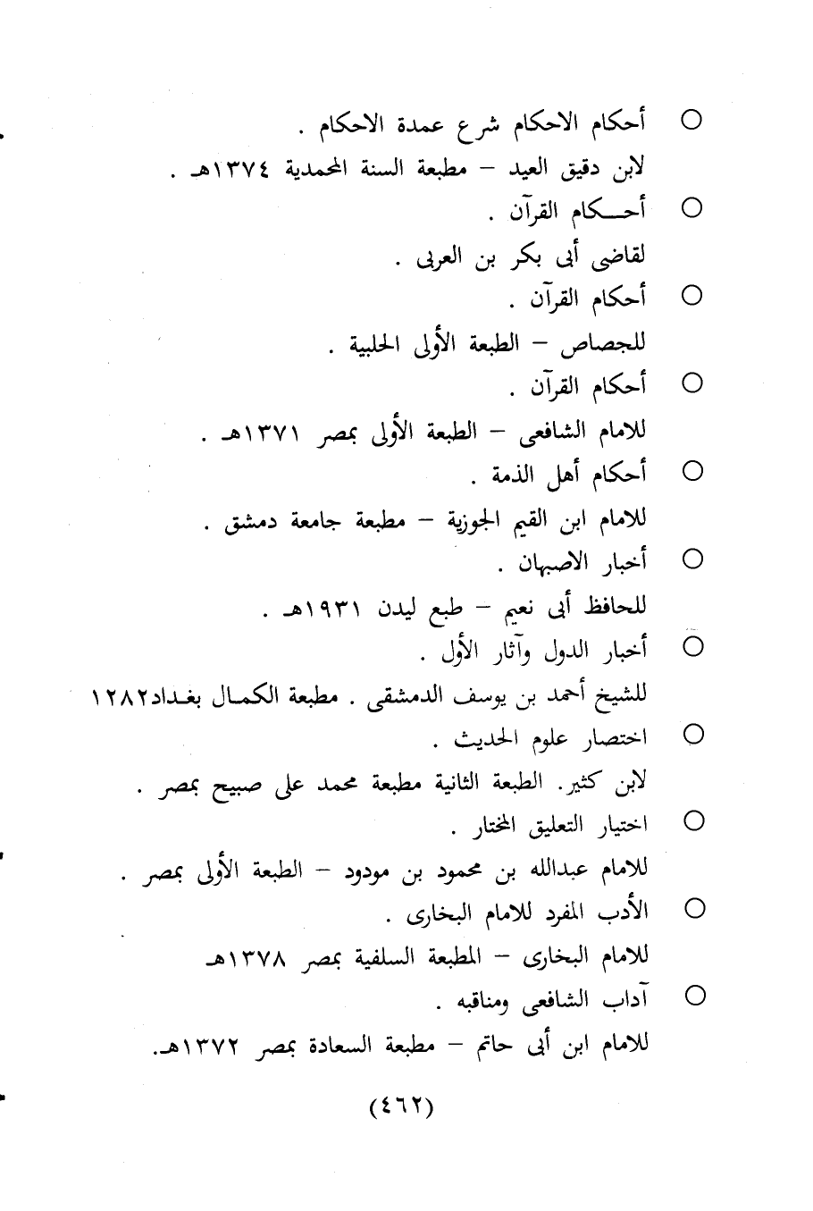 ° أحكام الاحكام شرع عمدة الاحكام. لابن دقيق العيد - مطبعة السنة المحمدية 1374 هـ.
