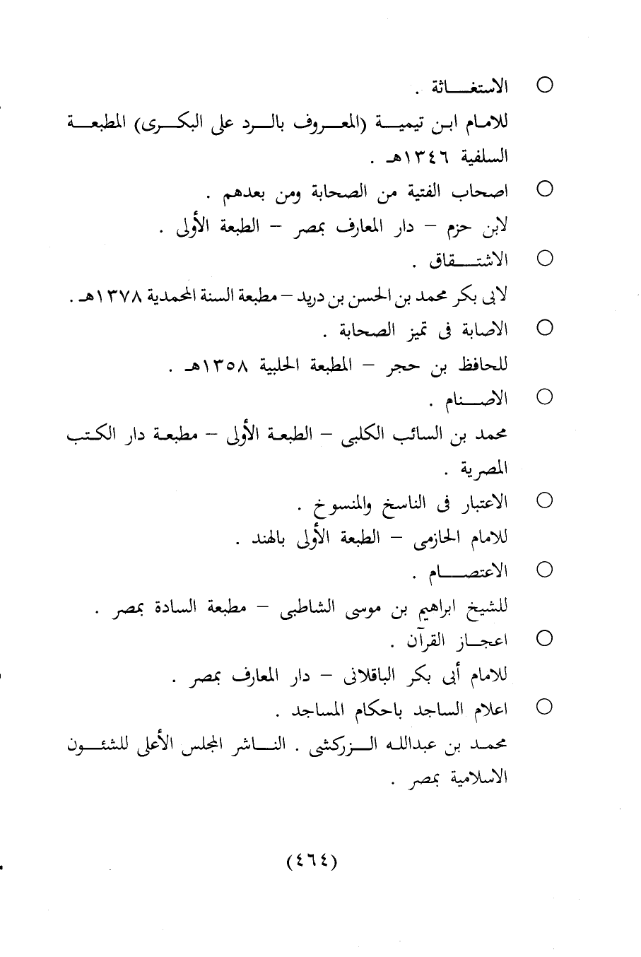° الاستغاثة. للامام ابن تيمية (المعروف بالرد على البكرى) المطبعة السلفية 1346 هـ.