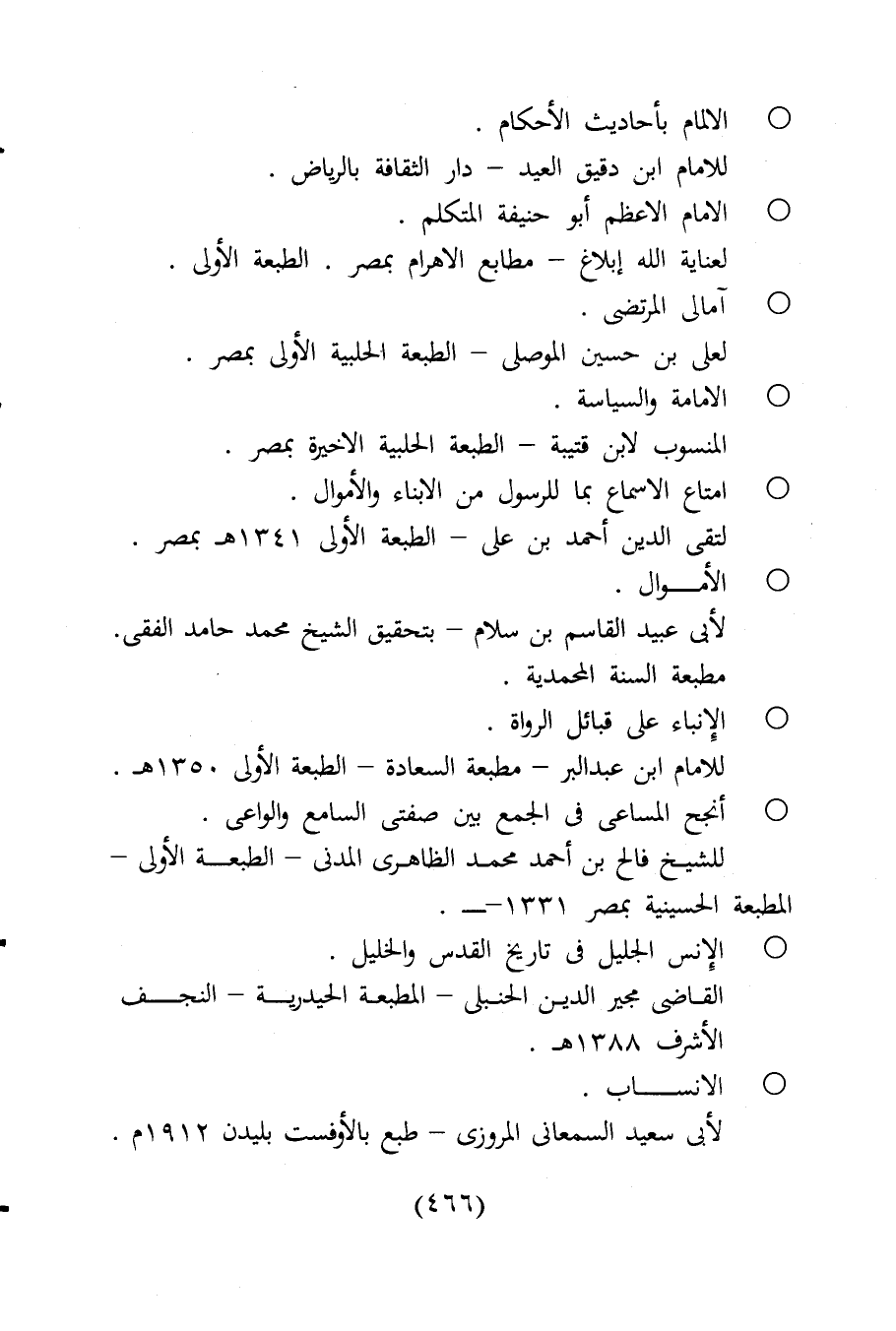 ° الإنباء على قبائل الرواة. للامام ابن عبد البر - مطبعة السعادة - الطبعة الأولى 1350 هـ.
